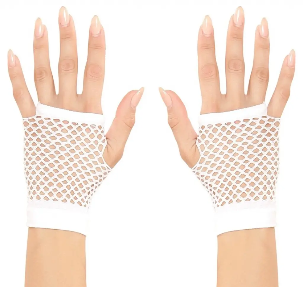 Karnaval ve cadılar bayramı kostümünüze bir dokunuş katacak kısa beyaz örgü eldivenler | Görünümünüzü bu 11 cm beyaz örgü eldivenlerle tamamlayın
